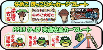 車のリアガラスやお部屋のドアに取り付けるタイプのアクリル製メッセージプレートです。安全運転中・お先にどうぞ・子供が乗っています・赤ちゃんが乗っています。お年寄りが乗っています。などの安全運転メッセージプレートです。 2017/02/15 PPLSカーサインシリーズ第2弾 おさわり探偵 なめこ栽培キット ほっこりメッセージプレート全10種を発売しました。 2017/01/27 PPLSカーサインシリーズ第1弾 かっぱ を発売しました。 |