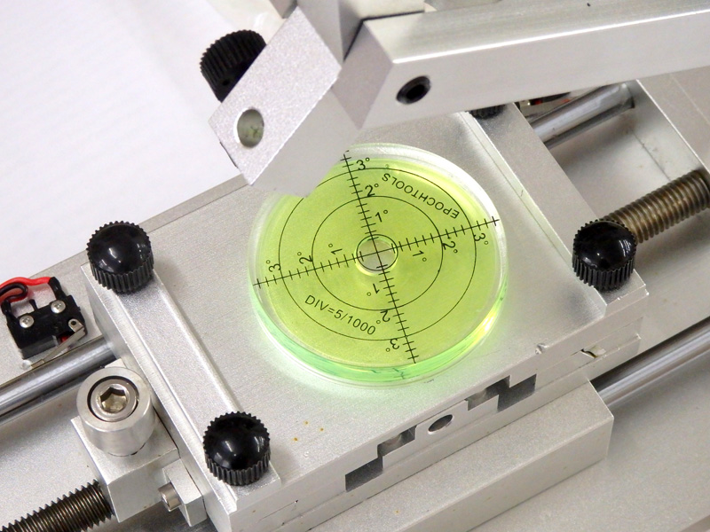 | 引っ掻き硬度の測定風景 | 設置位置の水平確認用水準器(付属品) |
