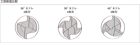 よって、加工寸法精度のシビアな切削では、4枚刃の方が適しているといえます。