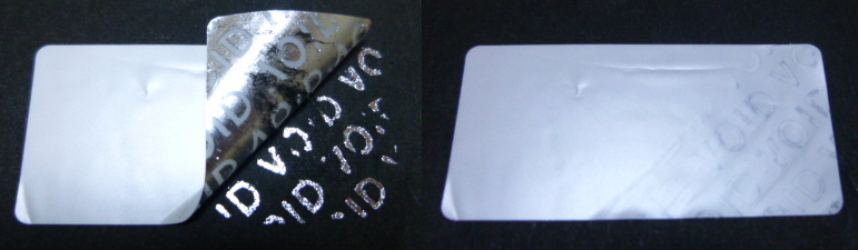 ②角丸のシルバー色とホワイト色のシールのタイプです。普通のシールに見えますよね。剥がれるとVOID(無効等の意味)が表示されます。