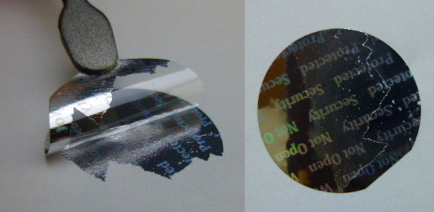 剥がした部分だけでなく、シール自体にも跡が残るのでシールを元に戻しても分かるようになっています。