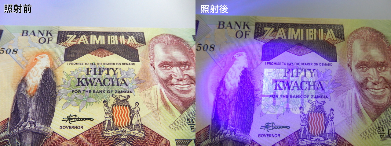 この「透かし」の有無の確認も、ブラックライトなら出来ちゃうんです!